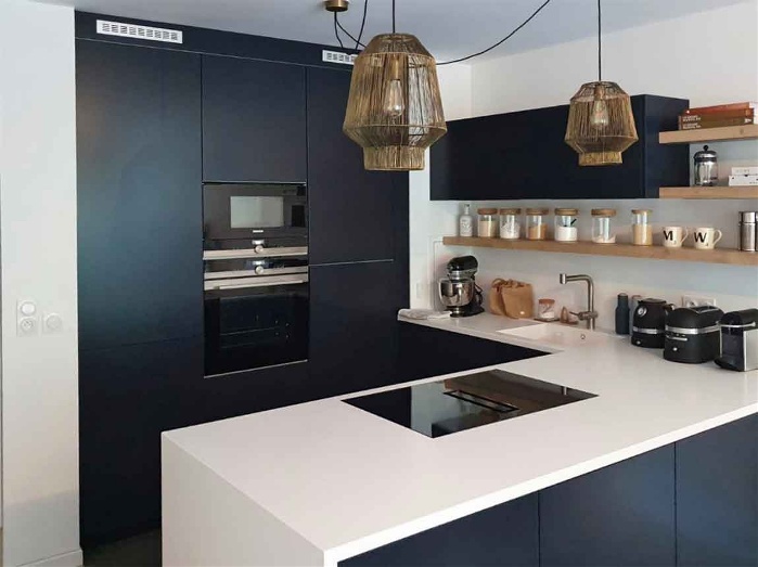 Cuisine laquée noire lisse RAL 9005 - Plan de travail Calacatta Cuisine placage chêne tabac - Plan de travail Corian Glacier White Cuisine laquée bleu nuit RAL 2010Plan de travail Corian Glacier White Cuisine laquée noire lisse RAL 9005 - Plan de travail Inox Cuisine stratifié blanc opaque et stratifié noir Volcano mat soyeux - Plan de travail Zimbabwé Noir satiné Cuisine laquée grise lisse NCS S4502-yPlan de travail Zimbabwé noir satiné Cuisine laquée blanche lisse RAL 9016Plan de travail Corian Glacier White Cuisine laquée noire lisse RAL 9005Plan de travail Granit White Cloud